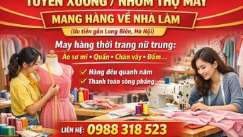 Tuyển dụng 20 thợ may tại xưởng, mang hàng về làm tại Long Biên