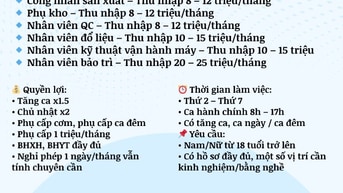🔥🔥🔥Tuyển 100 Công nhân sản xuất - đi làm ngay