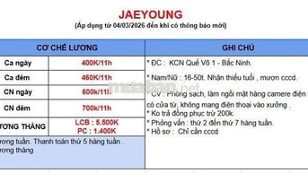 VIỆC LÀM KCN BẮC NINH - BẮC GIANG
