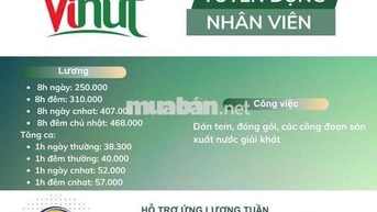 TUYỂN LDPT NAM -NỮ 18-60T ĐÓNG GÓI NƯỚC NGỌT XOAY