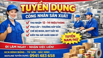 TUYỂN 30CN THU NHẬP TỪ 12-16 TRIỆU,TĂNG CA NHIỀU TẠI KCN BẮC NINH
