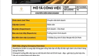 Tuyển 20 Nhân Viên Kinh Doanh tại TPHCM - Không Cần Kinh Nghiệm !