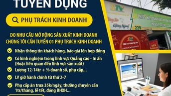 Cần tuyển: 01 PHỤ TRÁCH KINH DOANH