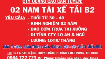 Công ty Quảng Cáo cần tuyển 02 nam tài xế tải B2