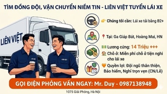 Tuyển lái xe tải bằng B2 tại ga Giáp Bát có chỗ ở