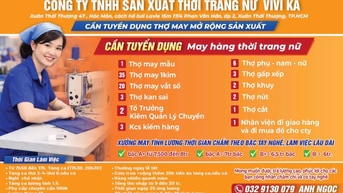C.ty TNHH SẢN XUẤT THỜI TRANG NỮ VIVI KA CẦN TUYỂN DỤNG THỢ MAY