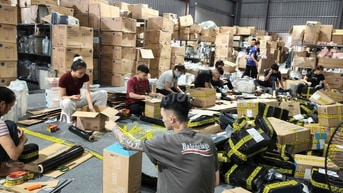 Nhân viên đóng gói đơn hàng, in đơn hàng shopee