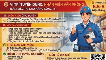 Nhân viên Kho - Làm việc xoay ca (ca tối đến 22h)