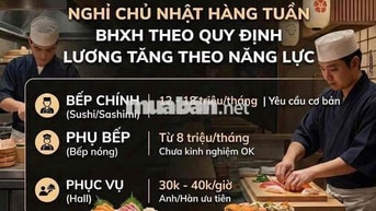 TUYỂN NHÂN VIÊN NHÀ HÀNG NHẬT BẢN