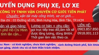 Việc làm phụ xe TP.HCM lương 10-15 triệu