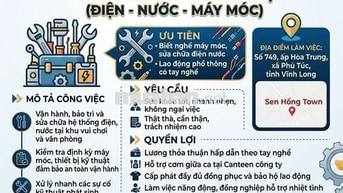 Việc làm thợ điện nước Bến Tre kinh nghiệm < 1 năm